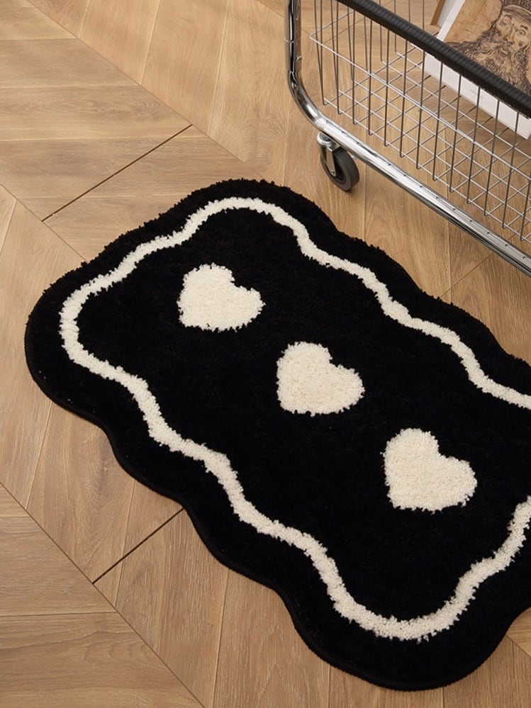 《即納》bi color heart bath mat (black)
