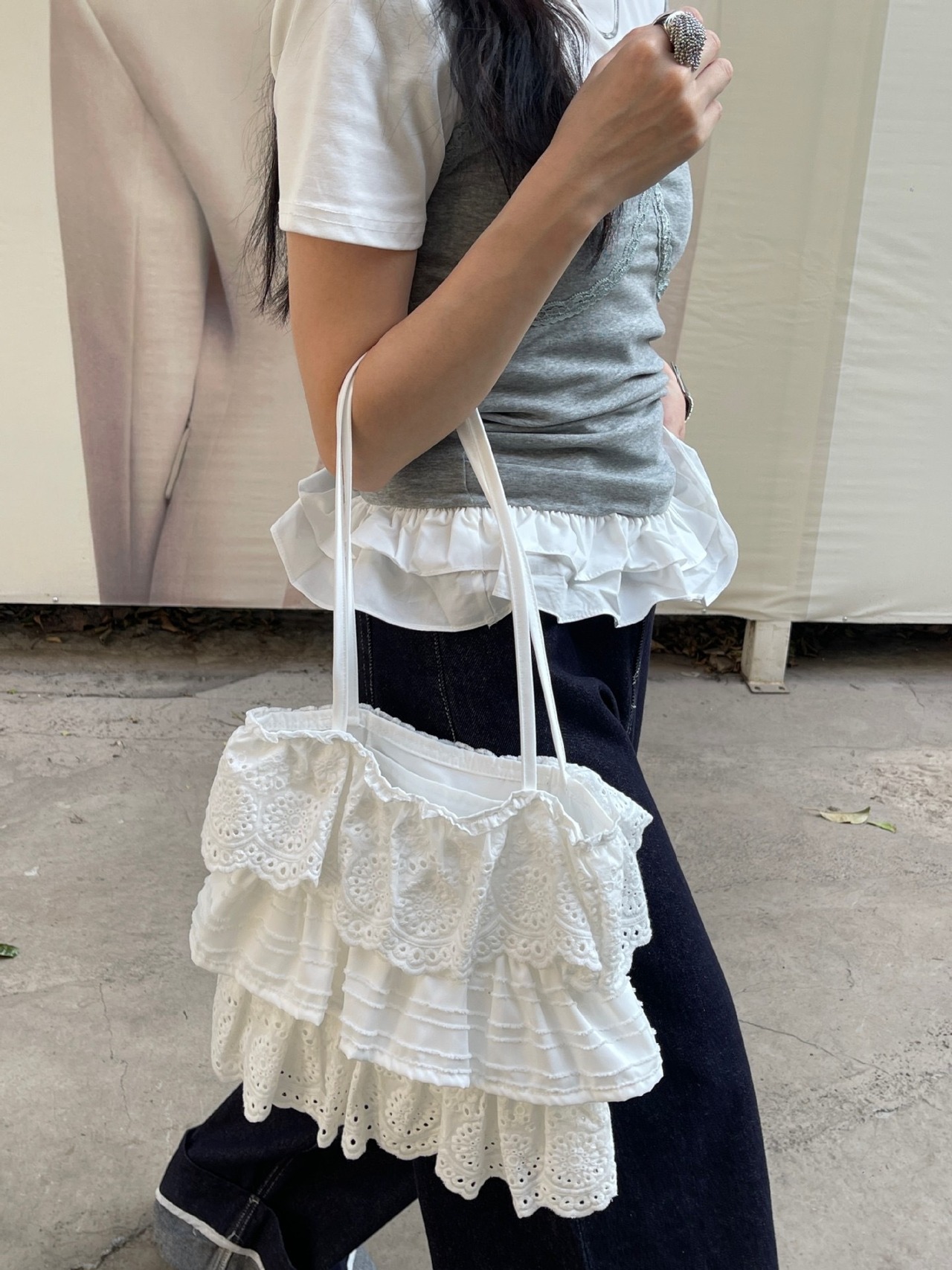《即納》 frill cotton bag